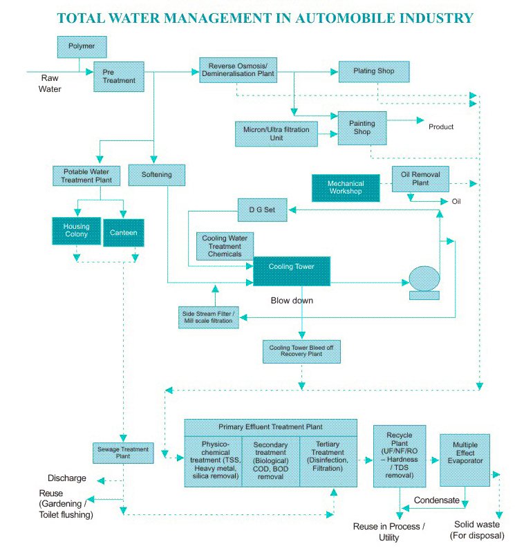 - Treatment & recycle of effluent from various shops, water blow down and utility waste to achieve zero discharge