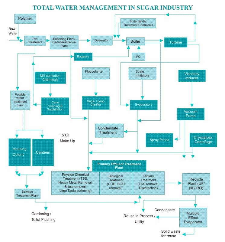 We offer total water and environment management for sugar mills and their cogen plants; we also offer a complete range of high performance speciality process chemicals specially developed for diverse applications in liquid and solid sugar manufacture.