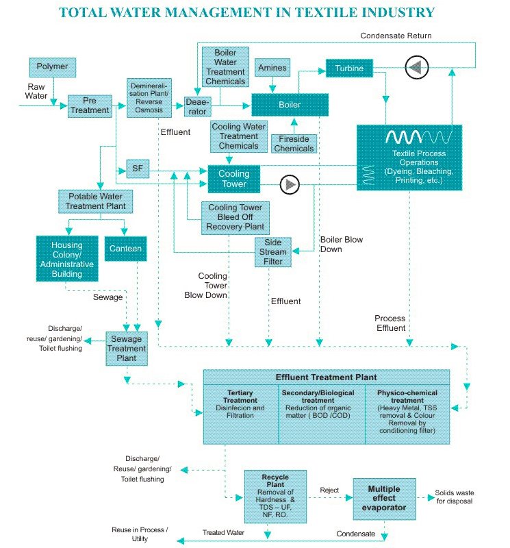 - Waste water treatment and recycle of process, dye bath and rinsing water for zero liquid discharge